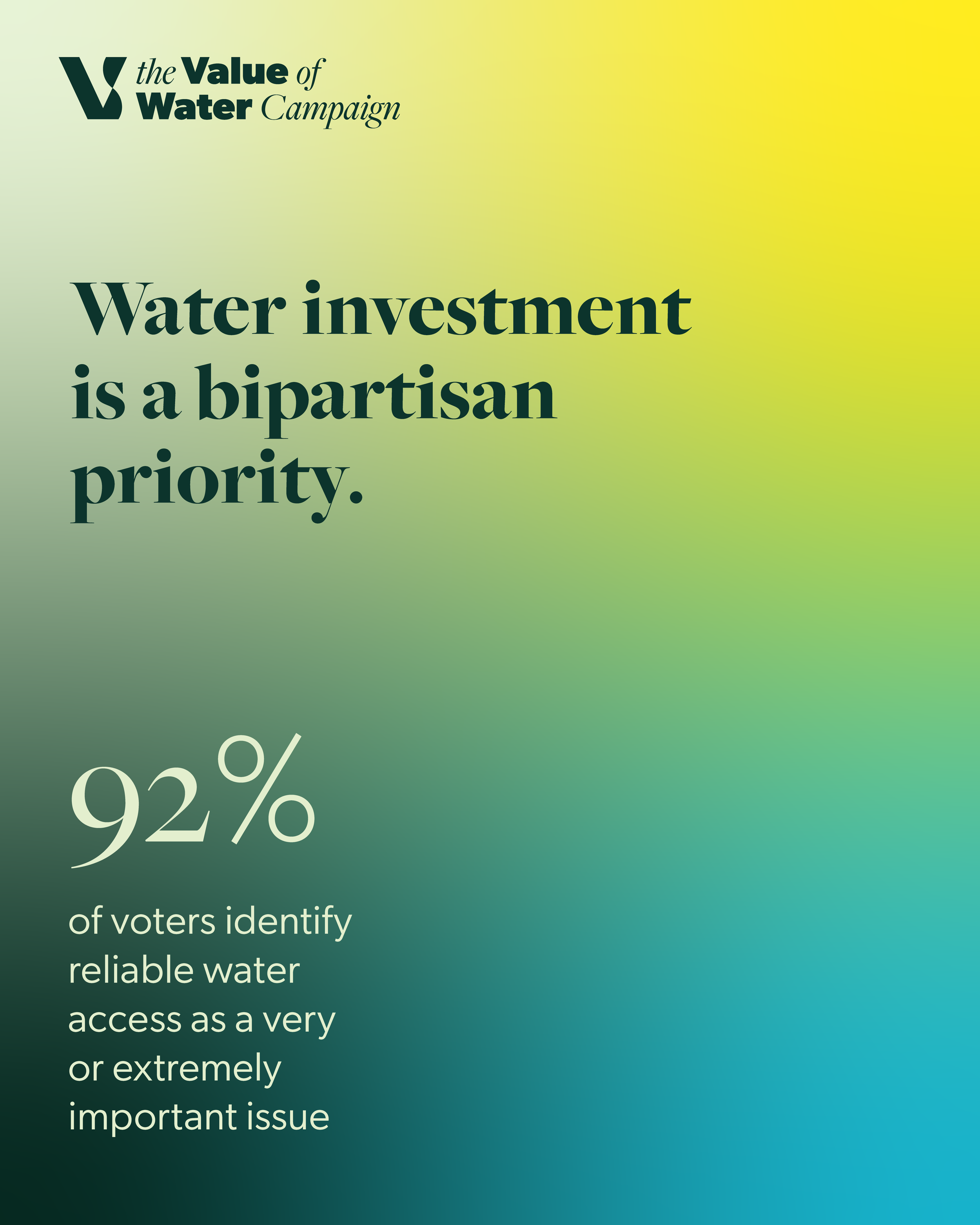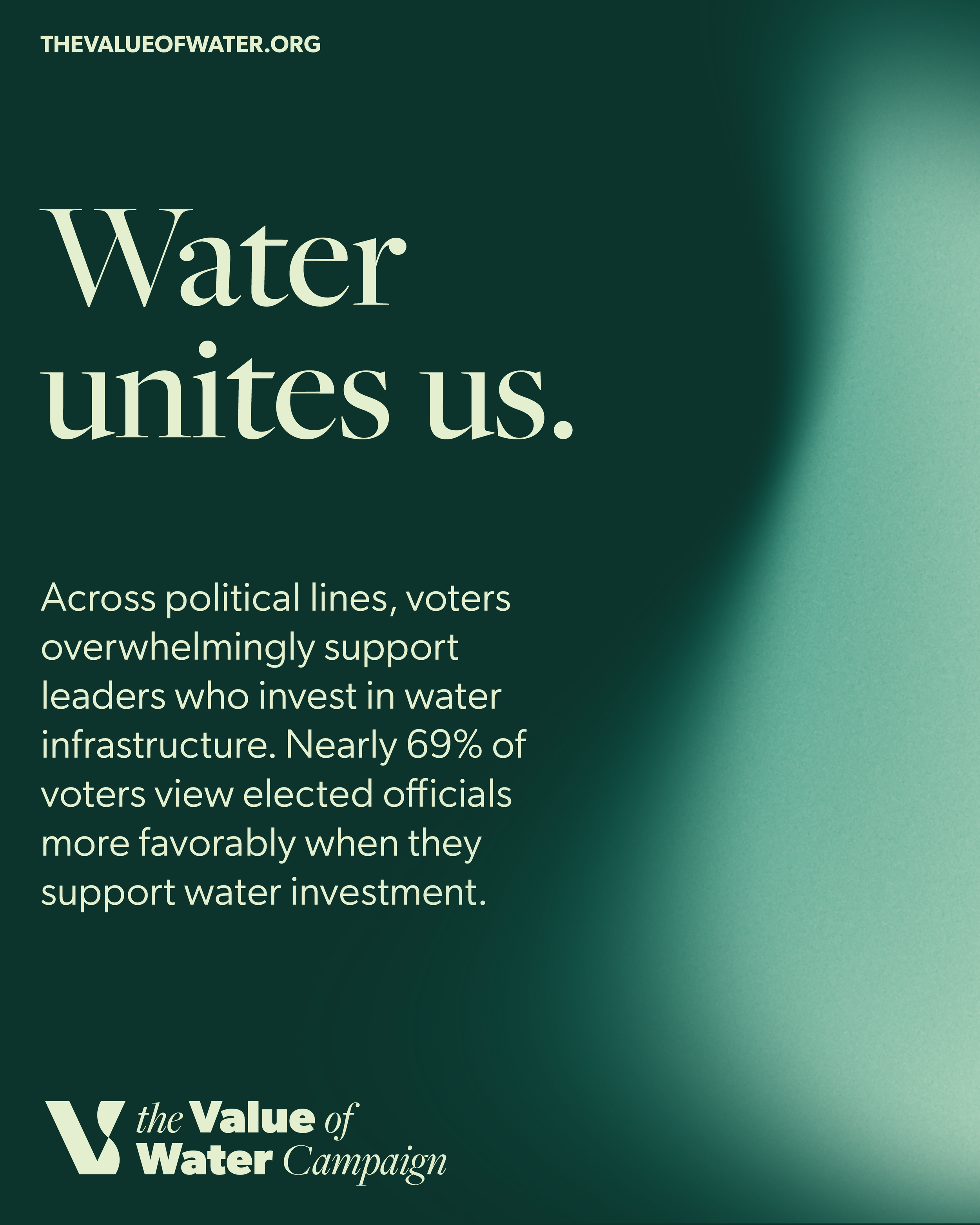 Since 2016, the Value of Water Campaign has conducted bipartisan polling of 1,000 voters nationwide to test opinions on water infrastructure, services, affordability, and funding. The resulting insights inform water leaders and policymakers on how Americans view the state of our nation’s water systems.